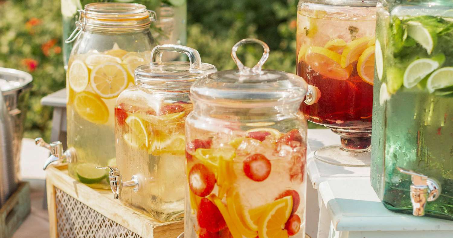 Not only are they refreshing, but they also elevate your décor with colorful glass jars and floating fruit arrangements.